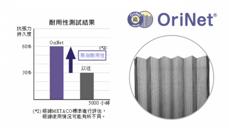 Ori Net紗網與先前使用的紗網相比,耐用性高出一倍。