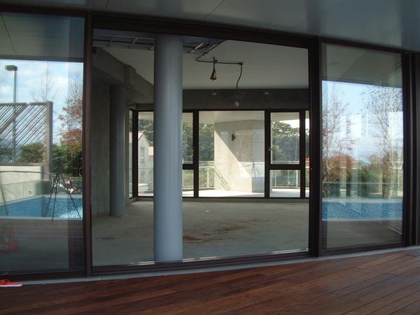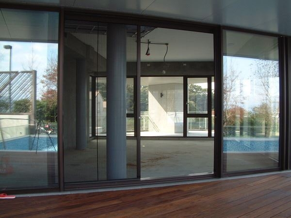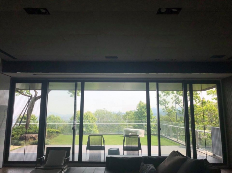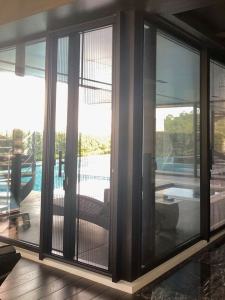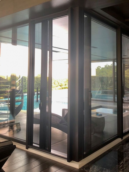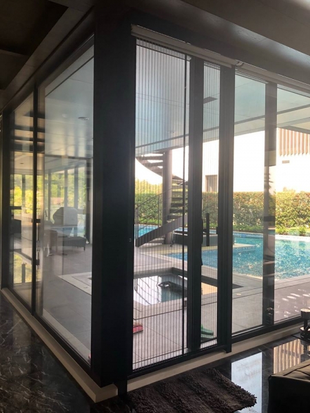 泳池正面[寬版雙開]紗門安裝完畢-收納於兩