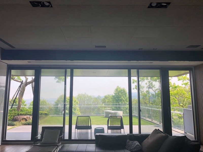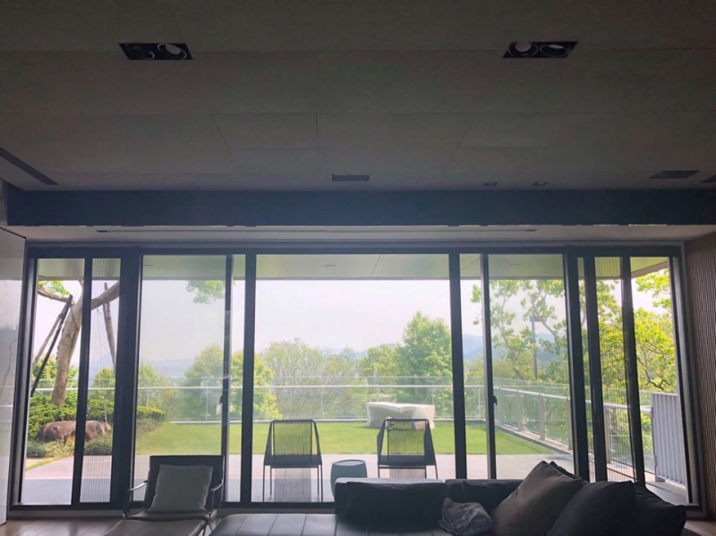 客廳[寬版單開]兩樘紗門安裝完畢-紗門收納中